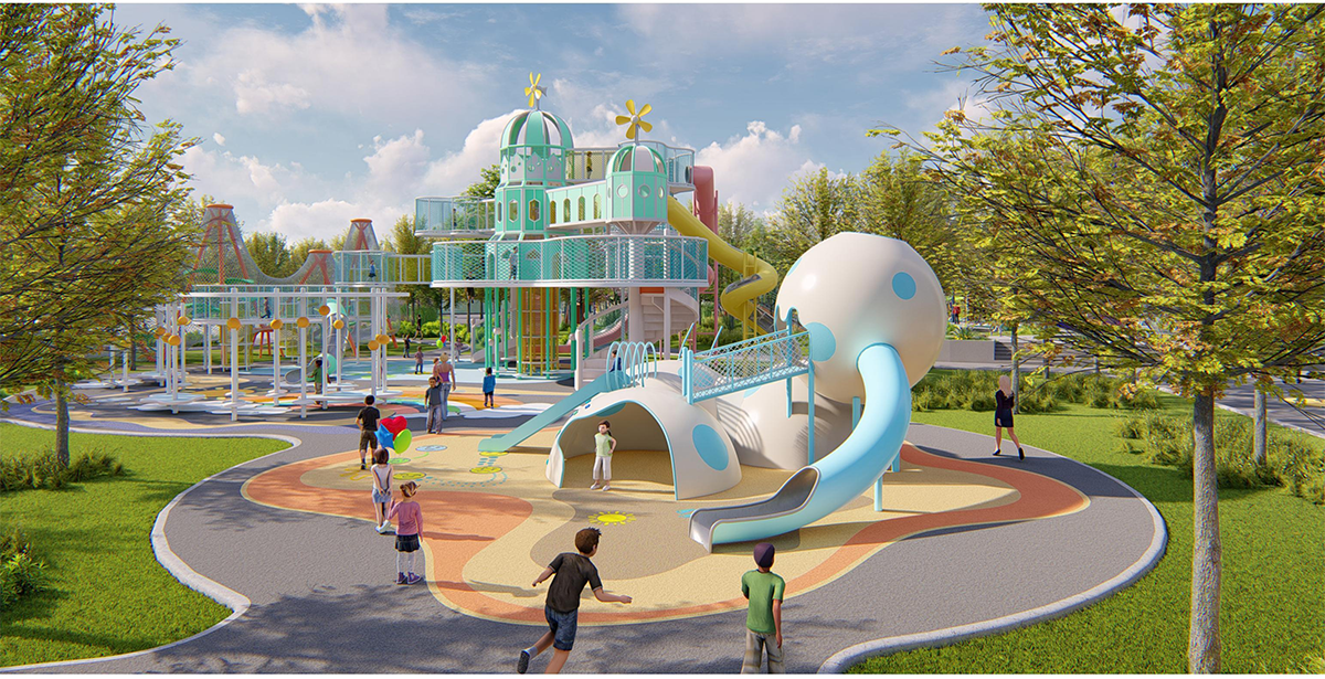 景觀規(guī)劃:景觀手法規(guī)劃場(chǎng)地,形成交互,增強(qiáng)體驗(yàn)。 流線空間:提取歷史文化,植入到空間,形成空間變化。 設(shè)備植入:獨(dú)特的造型、肌理、色彩等融入到場(chǎng)景當(dāng)中。 場(chǎng)景表達(dá):空間串聯(lián),打破常規(guī),塑造特色的主題樂(lè)園。 故事串聯(lián):利用故事吸引流量,給運(yùn)營(yíng)打造良好的基礎(chǔ)。 產(chǎn)品運(yùn)營(yíng):文化結(jié)合設(shè)計(jì),讓兒童在游玩的同時(shí)了解當(dāng)?shù)匚幕?