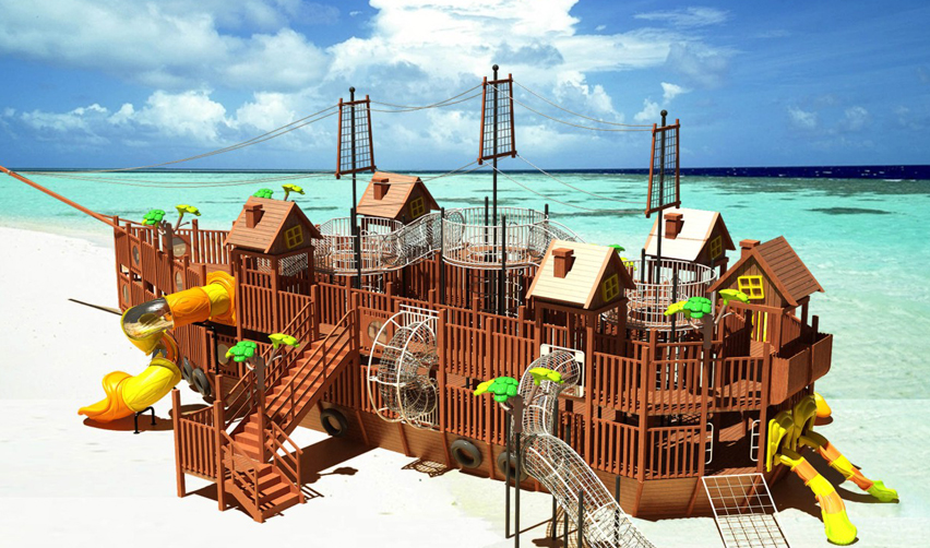 大型木質(zhì)組合滑梯,小滑梯、圓桶滑梯、網(wǎng)籠攀爬組合,雙層海盜船造型。深受兒童們喜愛。安全性已獲歐洲GS認證、CE認證、德國TUVGS認證、ISO9001認證。