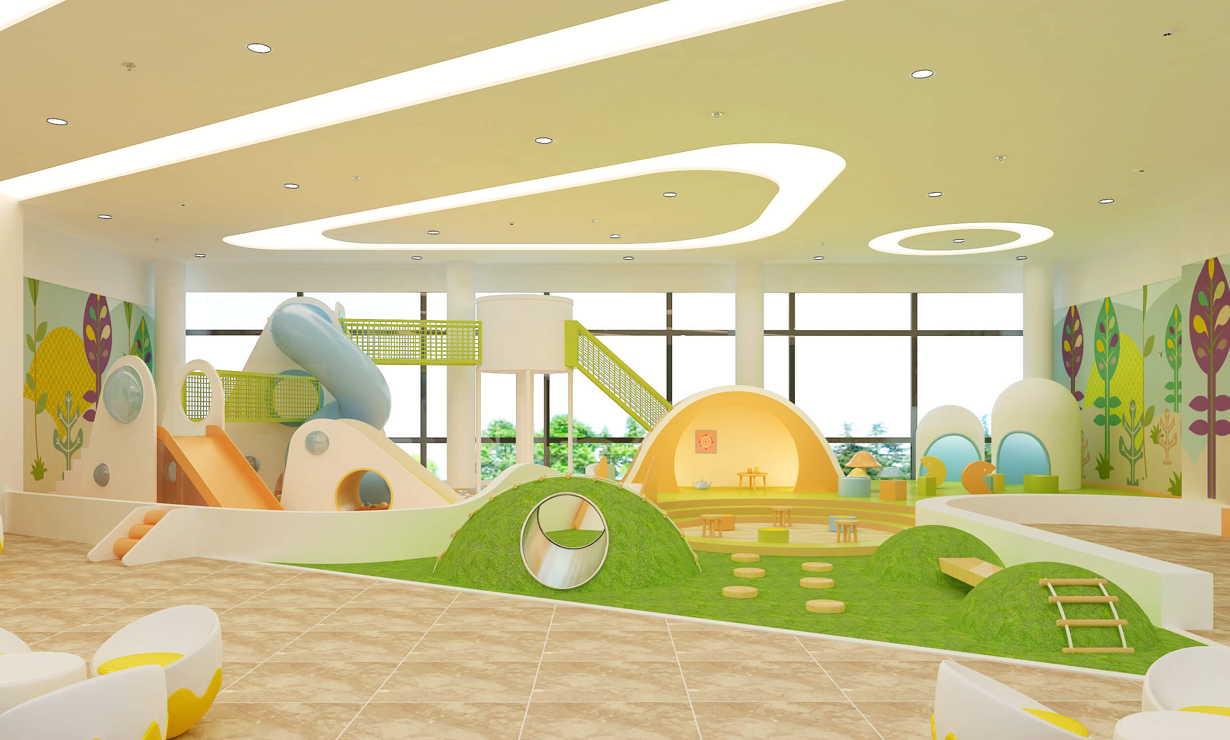 景觀規(guī)劃:景觀手法規(guī)劃場(chǎng)地,形成交互,增強(qiáng)體驗(yàn)。 流線空間:提取歷史文化,植入到空間,形成空間變化。 設(shè)備植入:獨(dú)特的造型、肌理、色彩等融入到場(chǎng)景當(dāng)中。 場(chǎng)景表達(dá):空間串聯(lián),打破常規(guī),塑造特色的主題樂(lè)園。 故事串聯(lián):利用故事吸引流量,給運(yùn)營(yíng)打造良好的基礎(chǔ)。 產(chǎn)品運(yùn)營(yíng):文化結(jié)合設(shè)計(jì),讓兒童在游玩的同時(shí)了解當(dāng)?shù)匚幕?
